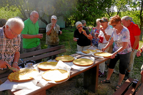 Rahmkuchen als Pfälzer Schmankerl angeboten. Fleißige Helfer